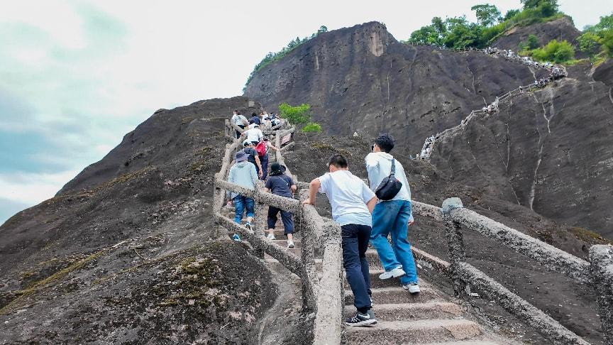 “不登天游,武夷白游!”第一天下午,團(tuán)隊(duì)向“武夷第一險(xiǎn)峰”天游峰進(jìn)發(fā),挑戰(zhàn)自我。