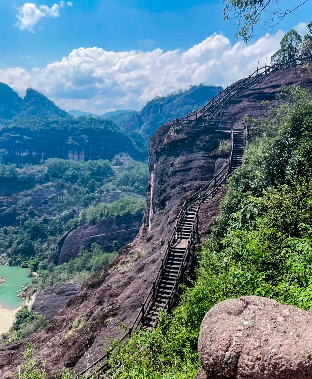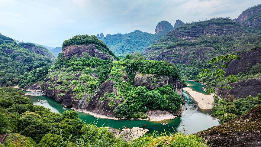 當(dāng)大家成功登頂,極目遠(yuǎn)眺,映入眼簾的是九曲溪如玉帶環(huán)繞群峰,風(fēng)景美不勝收。