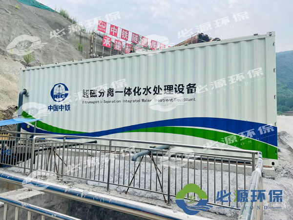 為了使隧道施工廢水達到排放標準,必源環保采用超磁分離工藝對廢水進行深度處理,超磁分離技術是通過向惰性污水中投加可循環利用的磁種,并在混凝劑和絮凝劑共同作用下形成磁絮凝體,然后利用稀土永磁磁盤產生的強磁場作用(磁力強度是其自身重量的600多倍),在瞬間(約2秒鐘內)實現污水固液分離的過程,以此達到污水處理的目的。