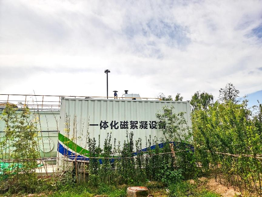 其中,前端預(yù)處理工藝環(huán)節(jié)采用了我司的磁混凝沉淀一體化設(shè)備,該設(shè)備安裝在人工淺層濕地的入水口處,與濕地聯(lián)合對污水處理廠排放的一級A標(biāo)準(zhǔn)出水與泄洪溝污水進(jìn)行深度凈化處理,凈化后的水質(zhì)指標(biāo)主要指標(biāo)優(yōu)于地表四類水,最終排入瀉湖。